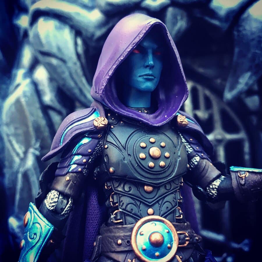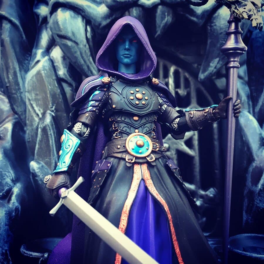 This figure was obviously inspired by The MOTU character of Keldor, who eventually becomes the evil Skeletor! I liked the idea of giving him a skull mask as a way to bring the iconic Skeletor skull into the design while also allowing him to have the elf-like look that Keldor needs.